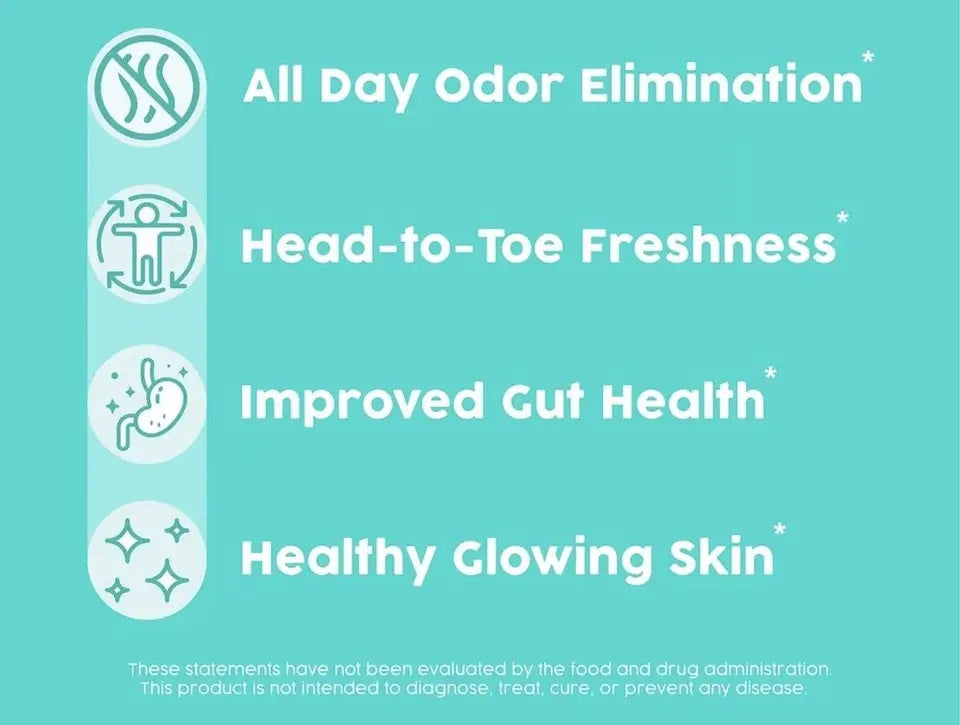 Enjoy full body odor protection, improved gut health & clearer skin, all from one daily capsule.